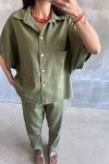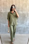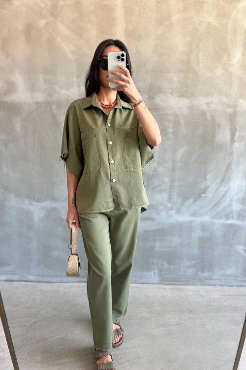 HAKİ GABARDİN GÖMLEK PANTOLON TAKIM